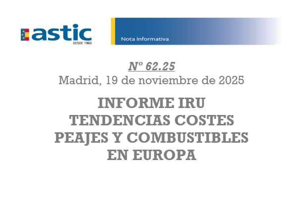 N.I. 62.25 Informe IRU tendencias costes peajes y combustibles en Europa